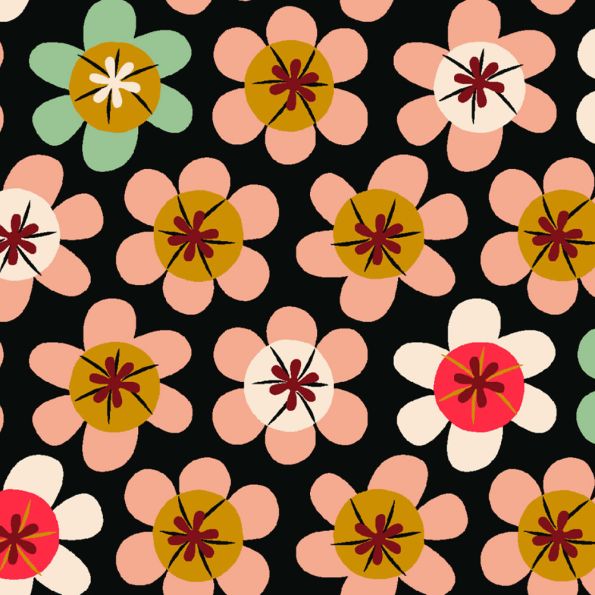 Tissu Coton imprimé Arty Nami fleuris sur fond Noir - Par 10 cm