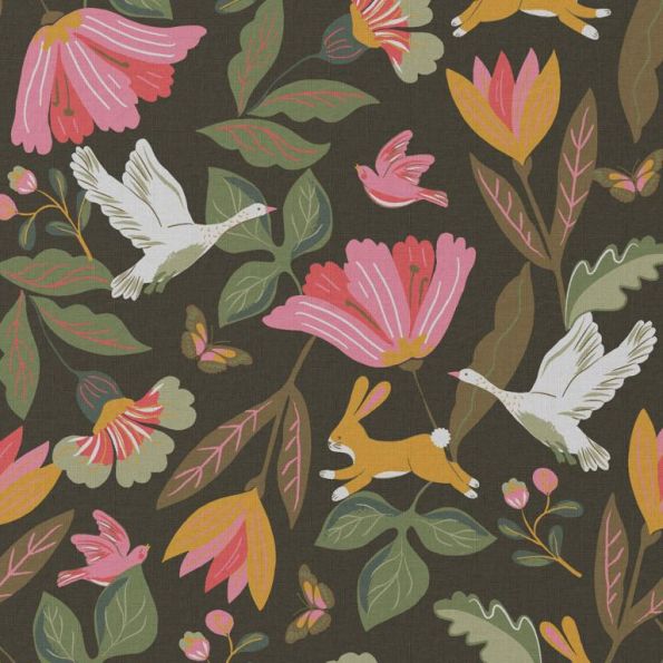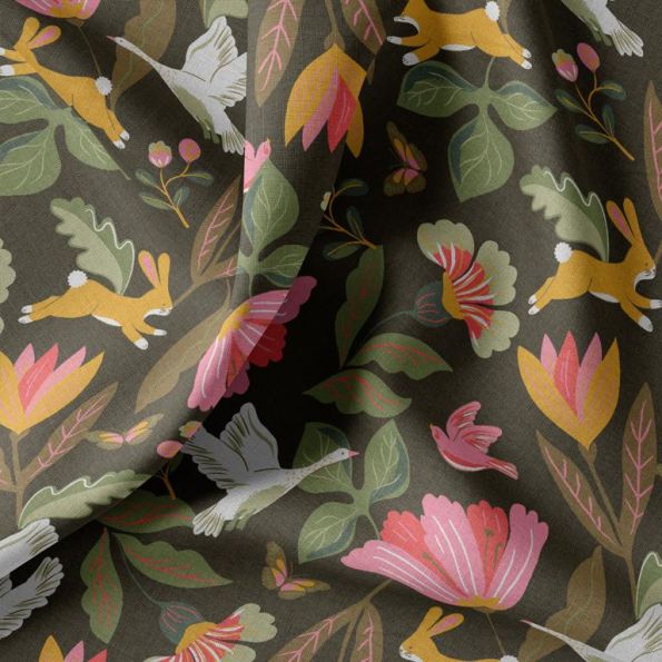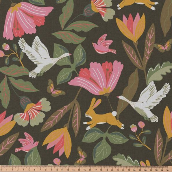 Tissu Coton imprimé Arty Norfolk sur fond Vert kaki - Par 10 cm