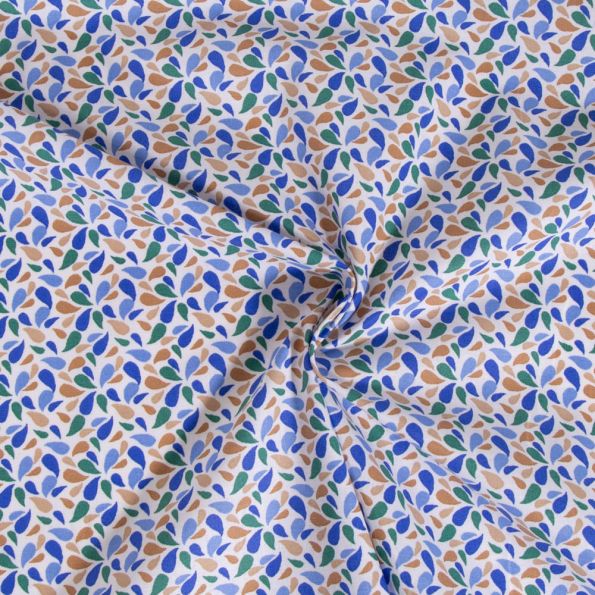 Tissu Coton imprimé Arty Otma Bleu et Vert sur fond Blanc - Par 10 cm