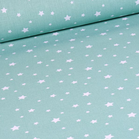 Tissu Coton imprimé Arty Petites et mini étoiles sur fond Vert menthe - Par 10 cm