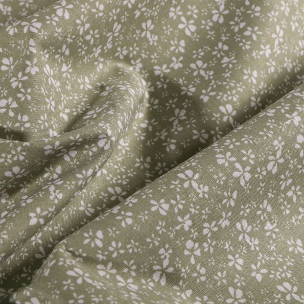 Tissu Coton imprimé Arty Petites fleurs blanches sur fond Vert pâle - Par 10 cm