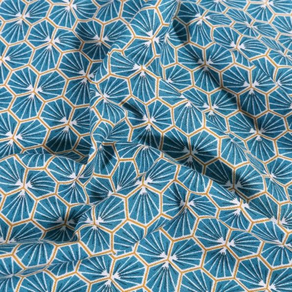 Tissu Coton imprimé Arty Riad sur fond Bleu pétrole - Par 10 cm