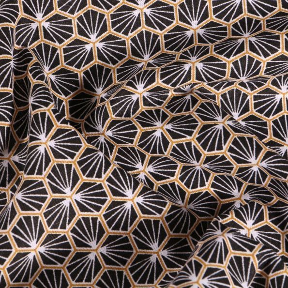 Tissu Coton imprimé Arty Riad sur fond Noir - Par 10 cm