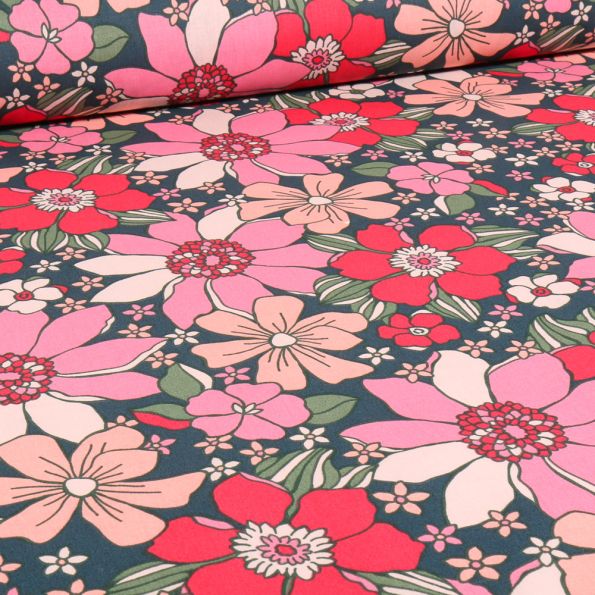 Tissu Coton imprimé Arty Sunflower sur fond Bleu marine - Par 10 cm