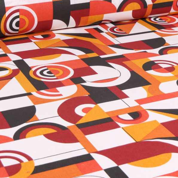 Tissu Coton imprimé Arty Woodstock sur fond Rouge - Par 10 cm