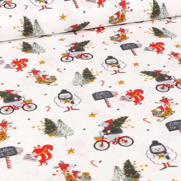 Tissu Coton imprimé Bio Letters for santa sur fond Blanc cassé - Par 10 cm
