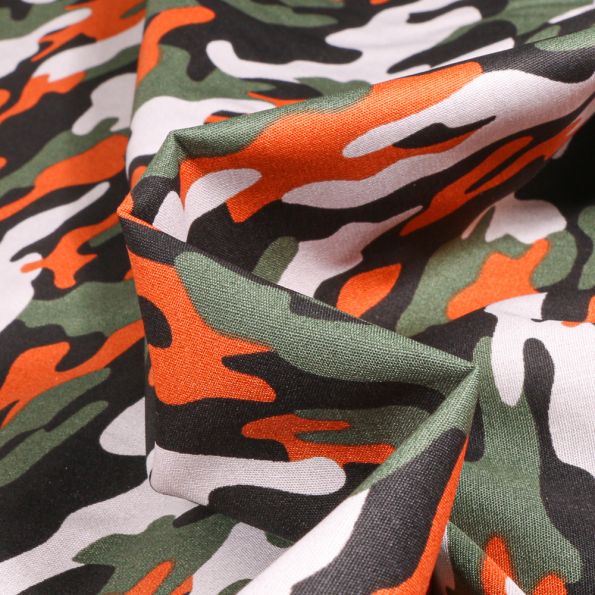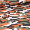 Tissu Coton imprimé Camouflage militaire sur fond Orange - Par 10 cm