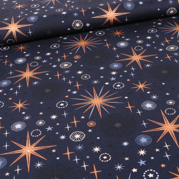 Tissu Coton imprimé Constellation Noël sur fond Bleu nuit - Par 10 cm