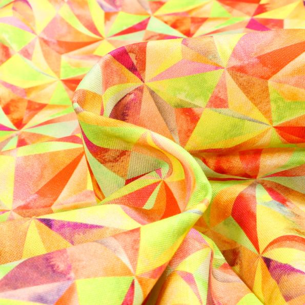 Tissu Coton imprimé digital Kaléido sur fond Jaune - Par 10 cm
