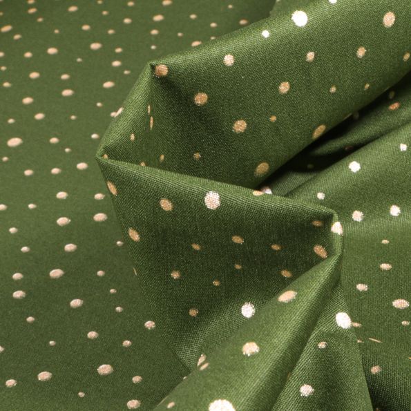 Tissu Coton imprimé doré Little point sur fond Vert kaki - Par 10 cm