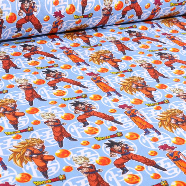 Tissu Coton imprimé Dragon ball Z Battle sur fond Bleu ciel - Par 10 cm