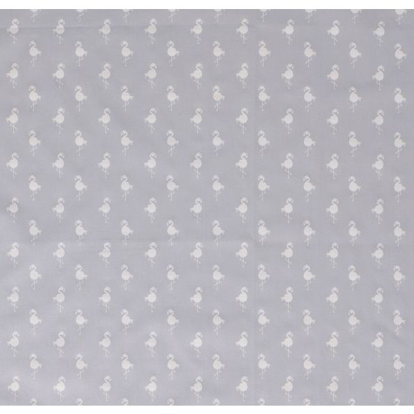 Tissu coton imprimé Flamants roses blancs sur fond Gris clair - Par 10 cm
