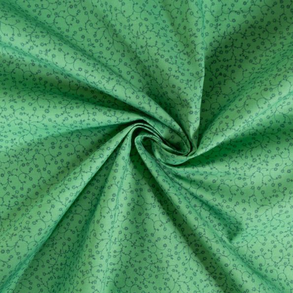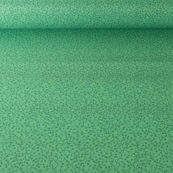 Tissu Coton imprimé Fleuris Lilou sur fond Vert - Par 10 cm