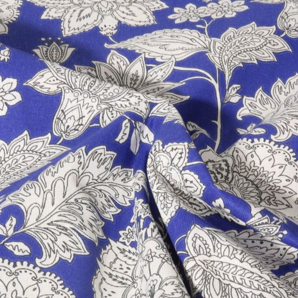 Tissu Coton imprimé Fleuris Shanna sur fond Bleu roi - Par 10 cm