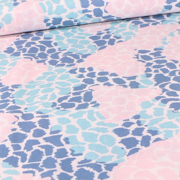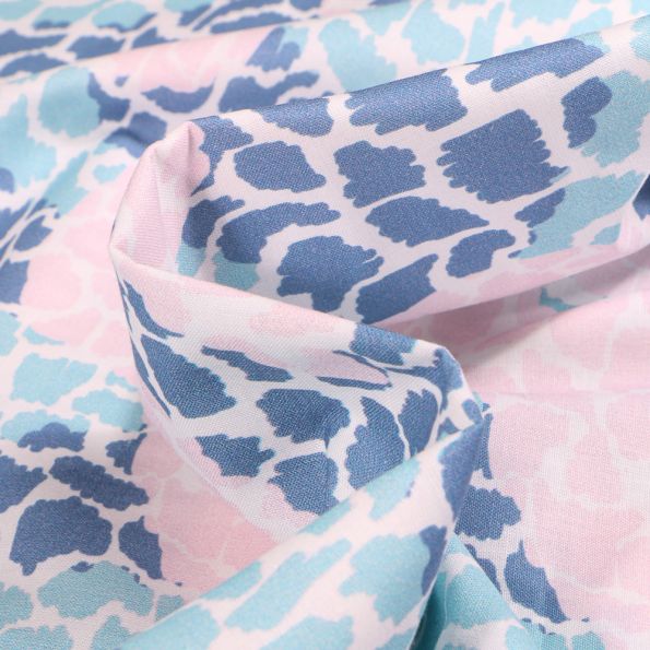 Tissu Coton imprimé Frou-Frou Mimetisme sur fond Bleu ciel - Par 10 cm