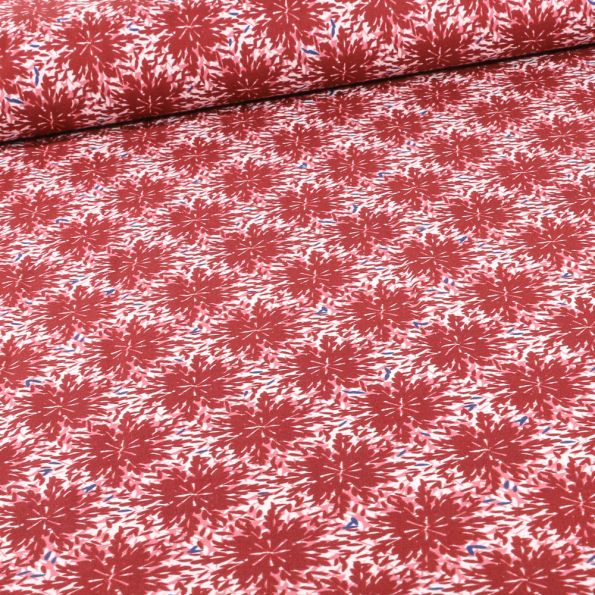 Tissu Coton imprimé Frou-Frou Talya sur fond Bordeaux - Par 10 cm
