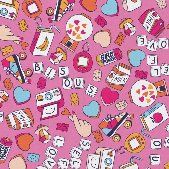 Tissu Coton imprimé Girlpower sur fond Rose fuchsia - Par 10 cm