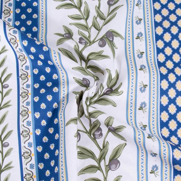 Tissu Coton imprimé glacé Provençal sur fond Bleu - Par 10 cm
