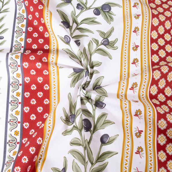 Tissu Coton imprimé glacé Provençal sur fond Rouge - Par 10 cm