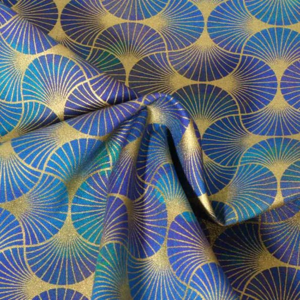 Découvrez tout le raffinement du design Robert Kaufman avec ce tissu Golden Vibes, une véritable œuvre textile. Le motif éventail japonais se décline ici dans un somptueux camaïeu de bleu nuit, turquoise, vert émeraude et violet, souligné par de fins reflets dorés qui captent la lumière avec élégance. Composé à 100 % coton et d’un poids de 146 g/m², ce tissu allie qualité et finesse. Sa laize de 112 cm en fait un tissu idéal pour des vêtements élégants, chemises originales, jupes ou kimonos légers, ainsi que pour des accessoires couture (pochettes, bandeaux, sacs) ou des éléments de décoration raffinée. Un tissu inspiré, chic et éclatant pour toutes vos créations créatives ou haute couture maison !