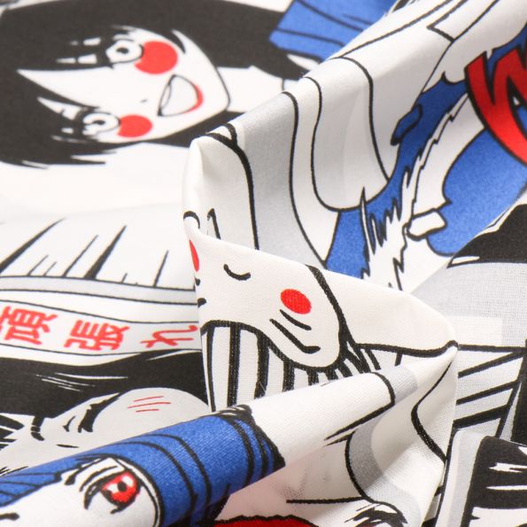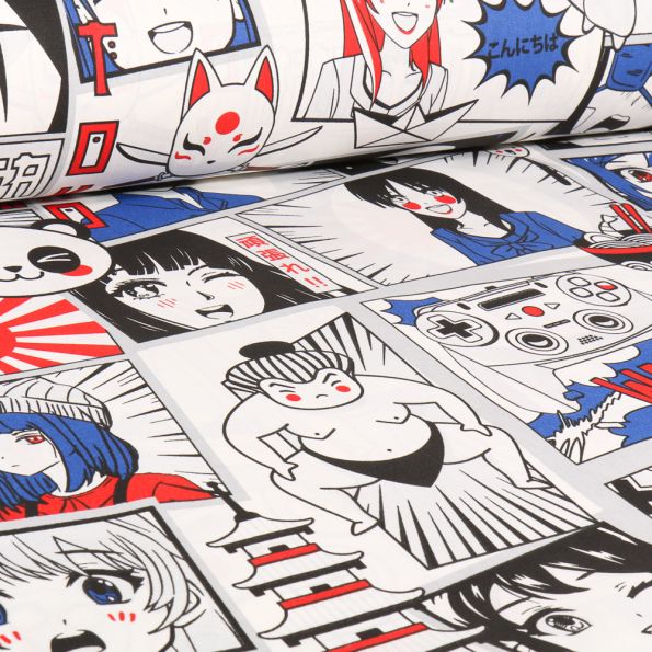 Tissu Coton imprimé grande largeur Manga BD sur fond Blanc - Par 10 cm