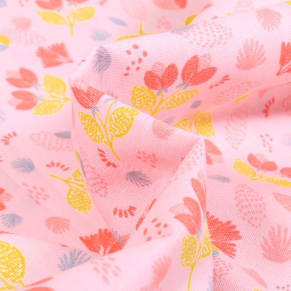 Tissu Coton imprimé LittleBird Jolies fleurs sur fond Rose - Par 10 cm