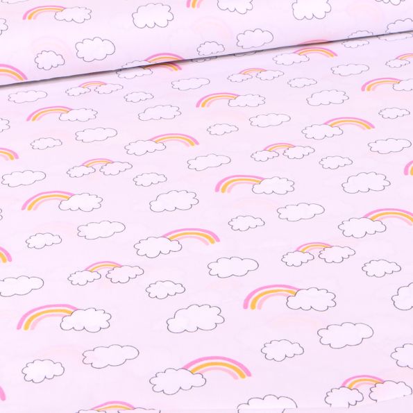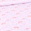 Tissu Coton imprimé LittleBird Nuages arc en ciel sur fond Rose pâle - Par 10 cm