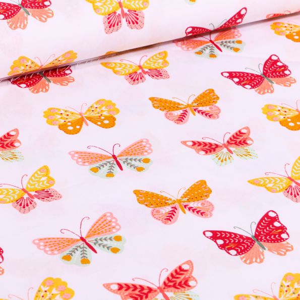 Tissu Coton imprimé LittleBird Papillons multicolores sur fond Blanc - Par 10 cm