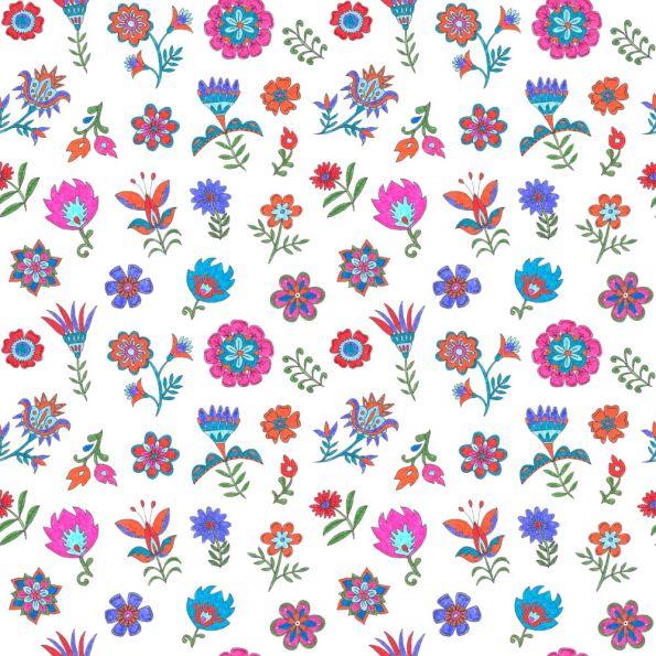 Tissu Coton imprimé Loulou fleuris sur fond Blanc - Par 10 cm