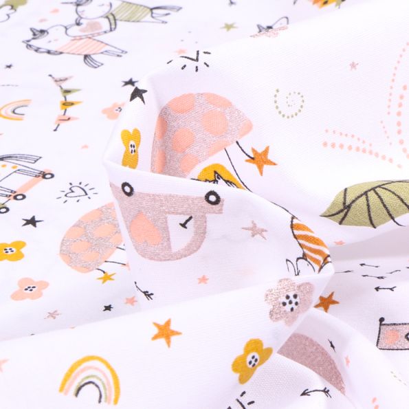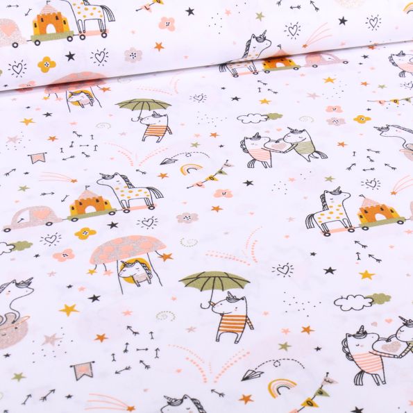 Tissu Coton imprimé Love licorne sur fond Blanc - Par 10 cm