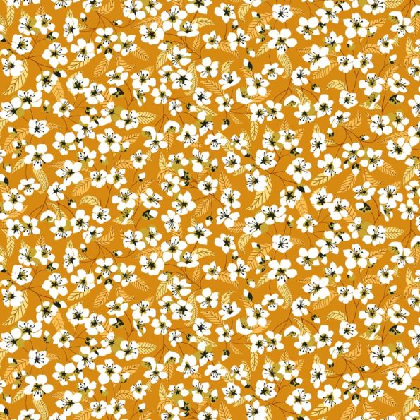 Tissu Coton imprimé Miyu sur fond Jaune - Par 10 cm