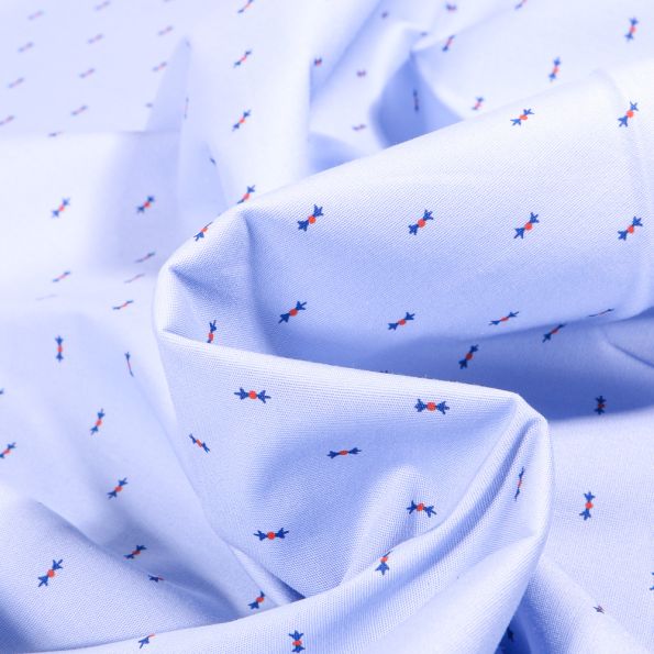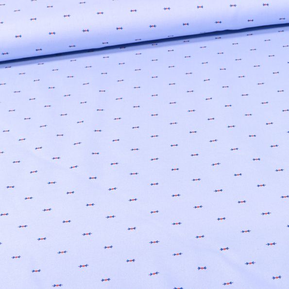 Tissu Coton imprimé Nœud pap' sur fond Bleu ciel - Par 10 cm