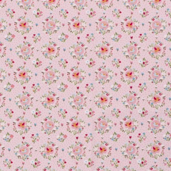 Tissu Coton imprimé Oiseaux Olga sur fond Rose bébé - Par 10 cm