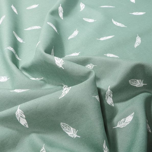 Tissu Coton imprimé Petites plumes sur fond Vert d'eau - Par 10 cm