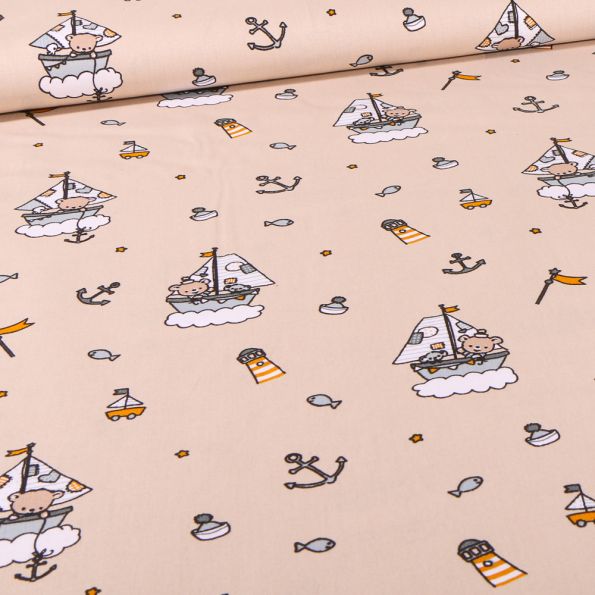 Tissu Coton imprimé Petits ourson marin sur fond Beige - Par 10 cm