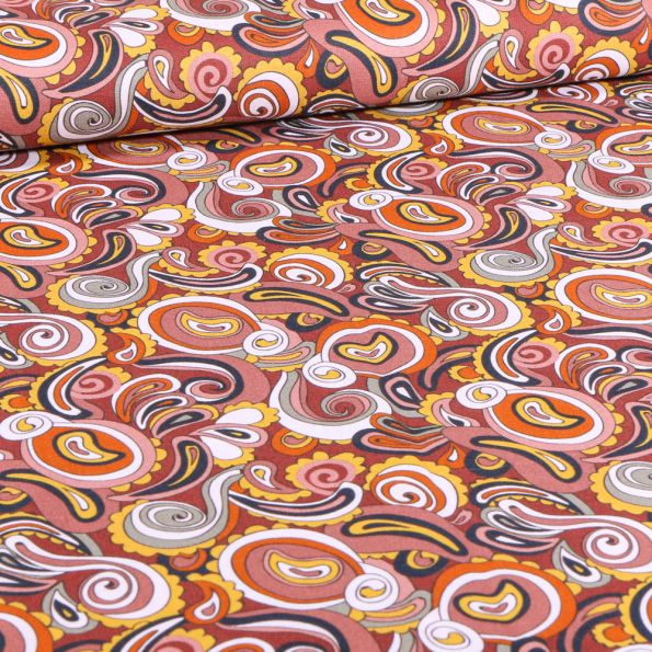 Tissu Coton imprimé Sixta Tika sur fond Vieux rose - Par 10 cm