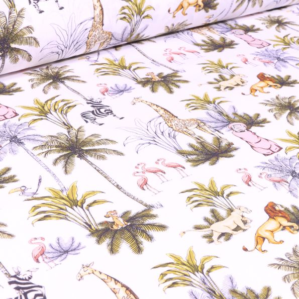 Tissu Coton imprimé sous licence Bio Le Roi Lion sur fond Blanc - Par 10 cm