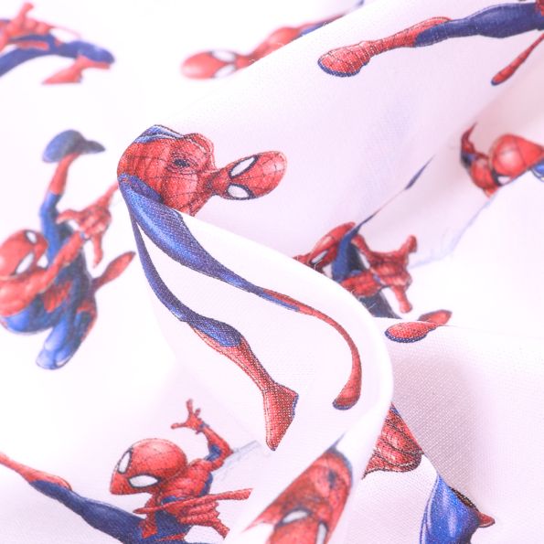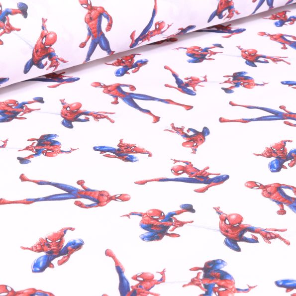 Tissu Coton imprimé sous licence Bio Spiderman à l'attaque sur fond Blanc - Par 10 cm