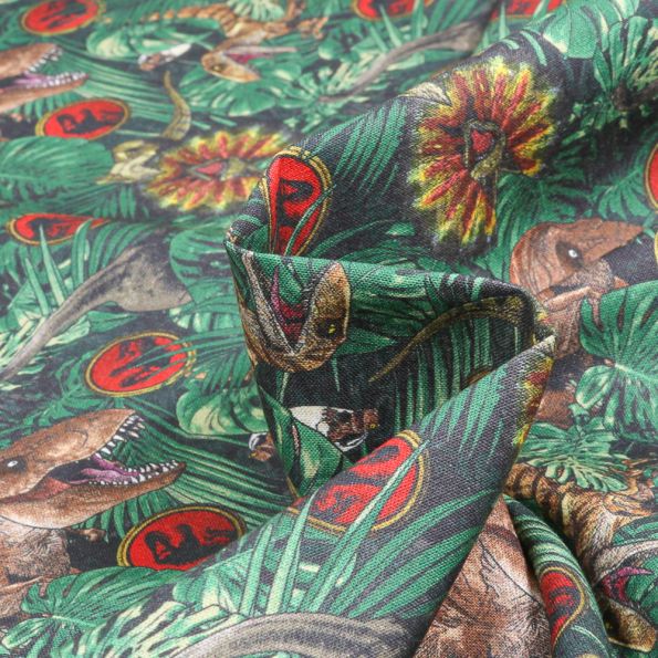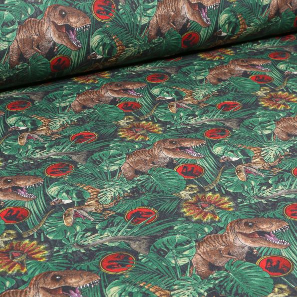 Tissu Coton imprimé sous licence Jurassic Park Art sur fond Vert foncé - Par 10 cm