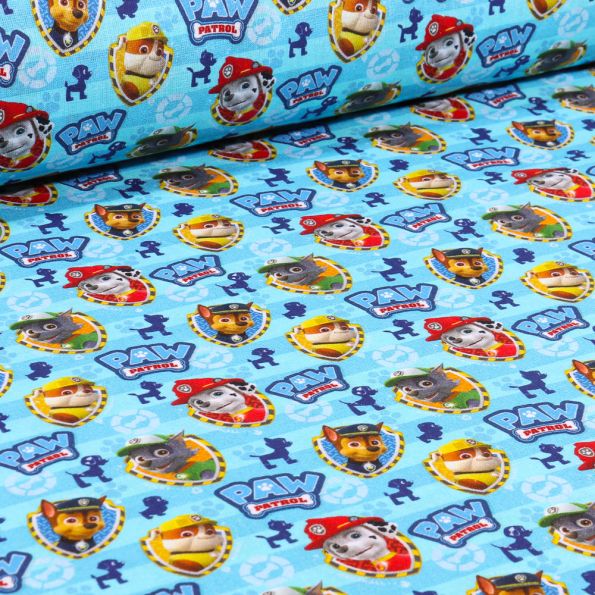 Tissu Coton imprimé sous licence Pat'patrouille sur fond Bleu turquoise - Par 10 cm