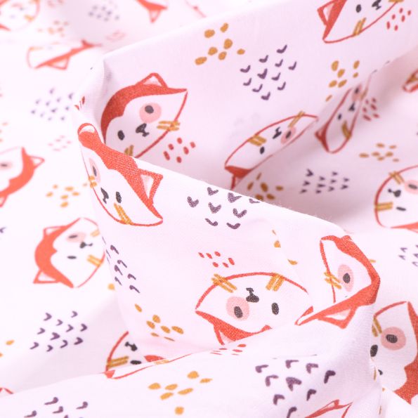 Tissu Coton imprimé Têtes de renards sur fond Blanc - Par 10 cm