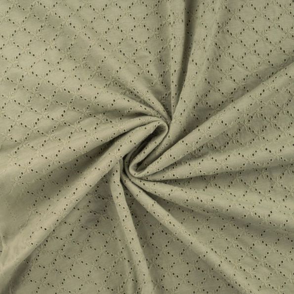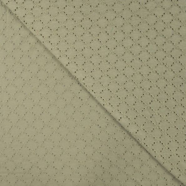 Tissu Coton Jersey brodé uni Vert kaki - Par 10 cm