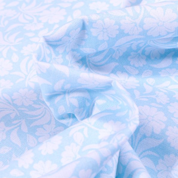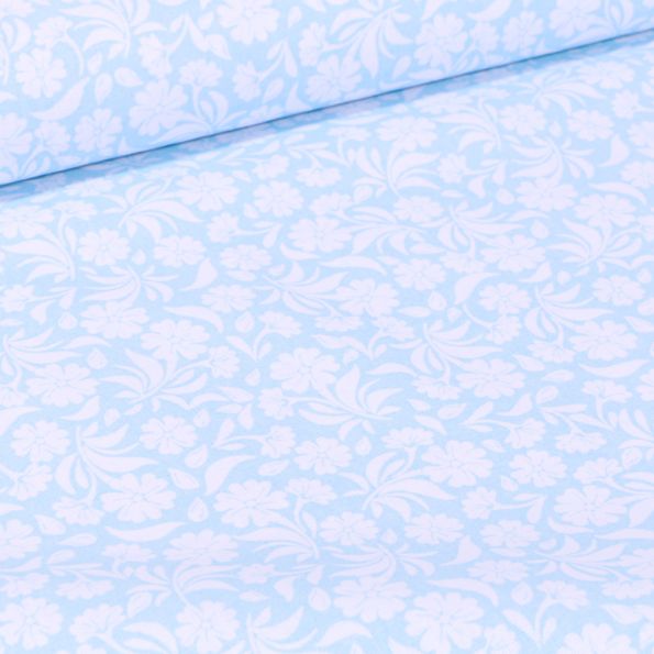 Tissu Coton MC Fabrics Garden sur fond Bleu ciel - Par 10 cm