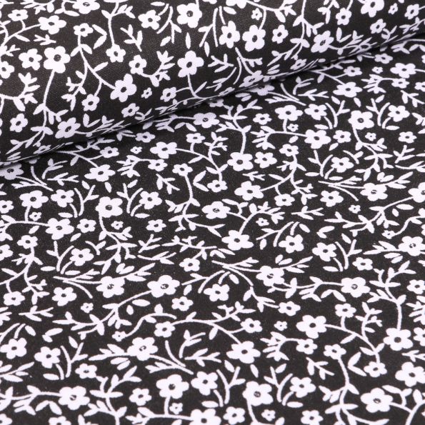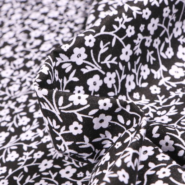 Tissu Coton MC Fabrics Pâquerettes blanches sur fond Noir - Par 10 cm