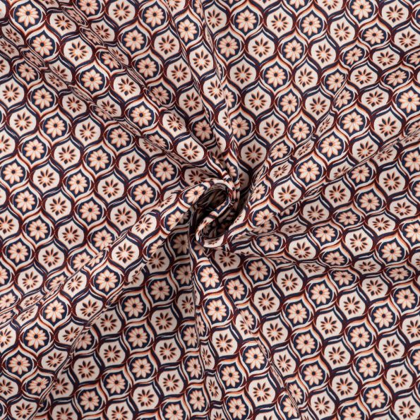Tissu Coton Satiné extensible imprimé Fancy sur fond Rose poudré - Par 10 cm