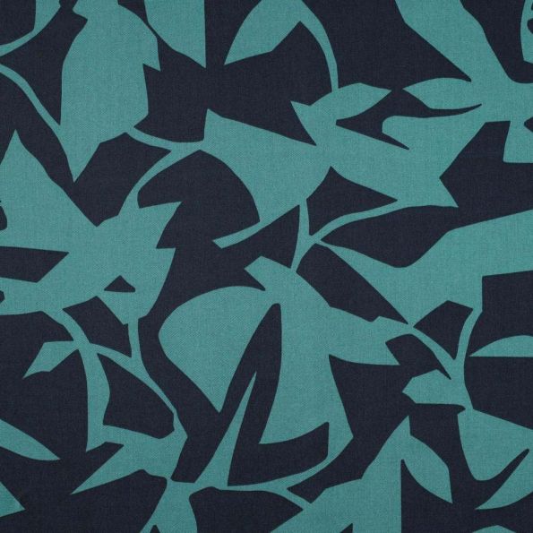 Tissu Coton Satiné léger motifs abstraits bleu canard sur fond Bleu marine - Par 10 cm