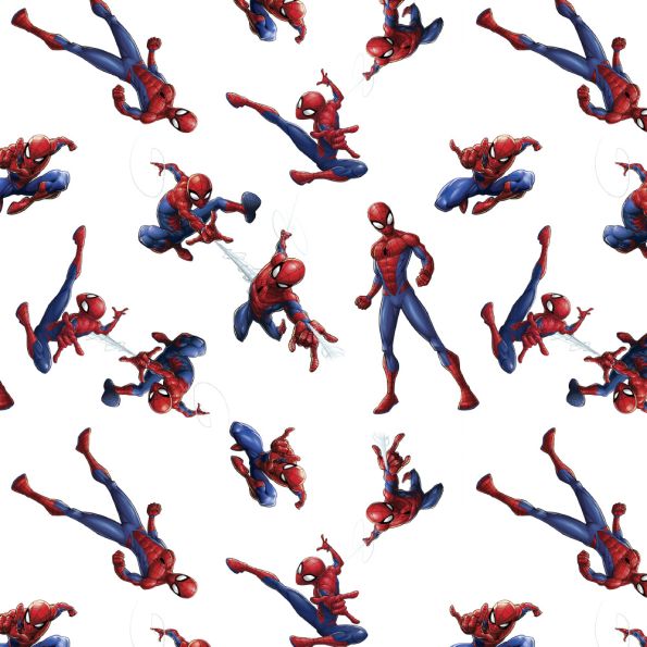 Tissu Coton sous licence Bio Spiderman sur fond Blanc - Par 10 cm