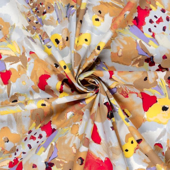 Tissu Coton stretch imprimé Fleuris aquarelle sur fond Gris - Par 10 cm