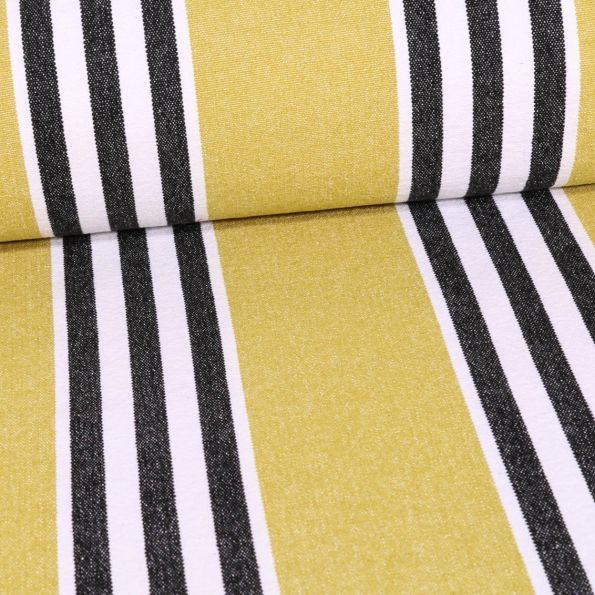 Tissu Coton Tissé Rayures noires et blanches sur fond Olive - Par 10 cm