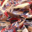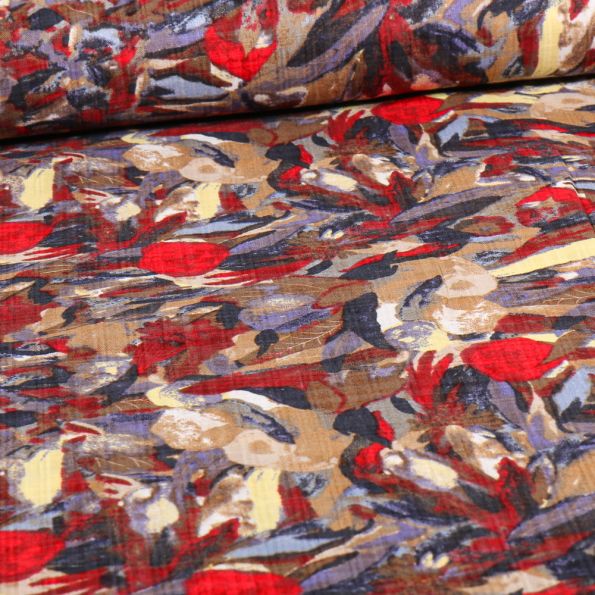 Tissu Coton Viscose Catina rouge sur fond Marron - Par 10 cm
